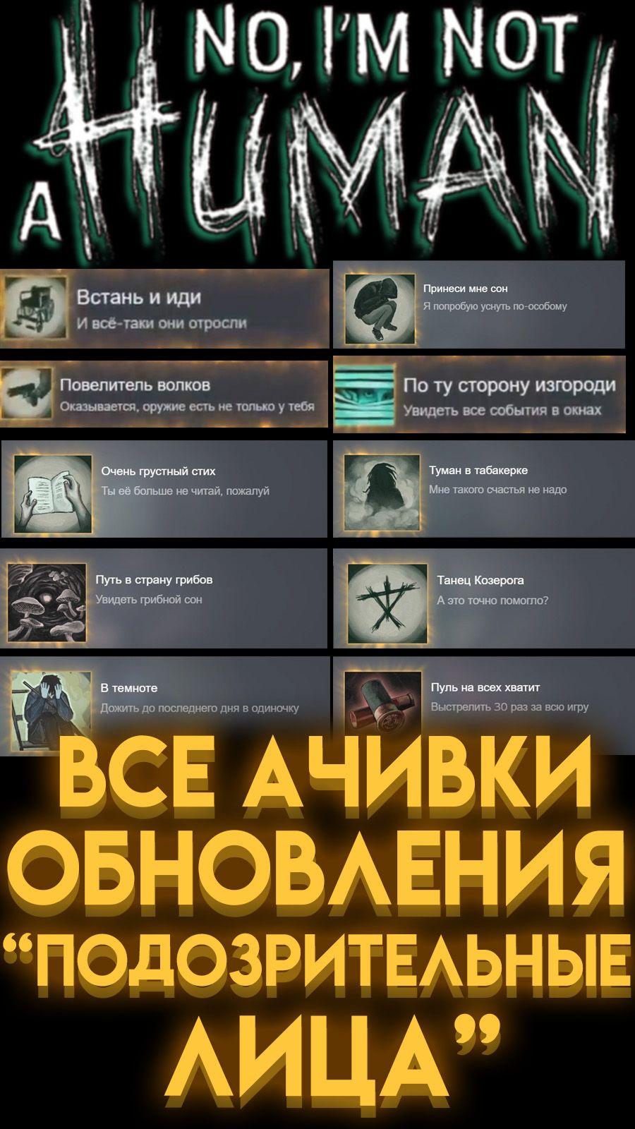 КАК ПОЛУЧИТЬ ВСЕ ДОСТИЖЕНИЯ ОБНОВЛЕНИЯ "ПОДОЗРИТЕЛЬНЫЕ ЛИЦА" В НЕТ, Я НЕ ЧЕЛОВЕК ?