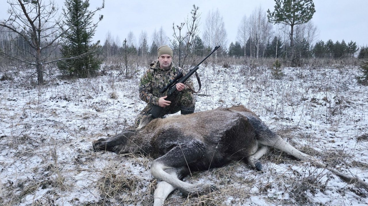 ОХОТА НА ЛОСЯ С ПОДХОДА ПО ПЕРВОМУ СНЕГУ.