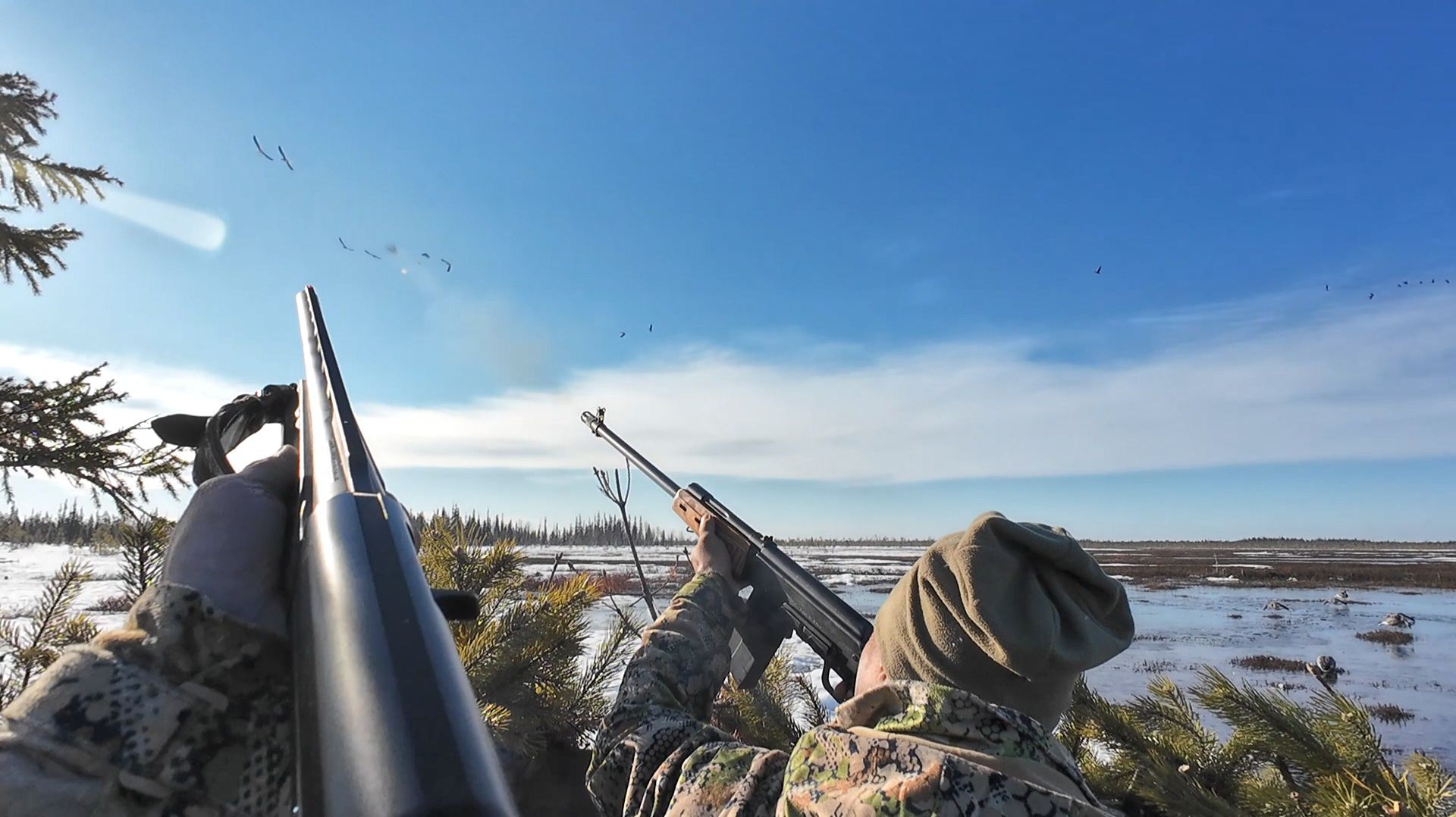ОХОТА НА ГУСЯ И УТКУ НА СЕВЕРЕ. ХОРОШО ОТСТРЕЛЯЛИСЬ С ПЯТИЗАРЯДОК. ГУСЬ МАССОВО ШЕЛ НА СЕВЕР.