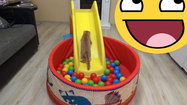 Котенок Фокси катается с горки и играет в бассейне с шариками смешное видео