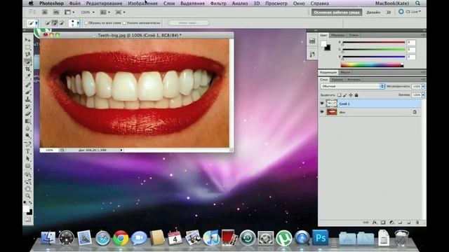 Как отбелить зубы в фотошопе)))