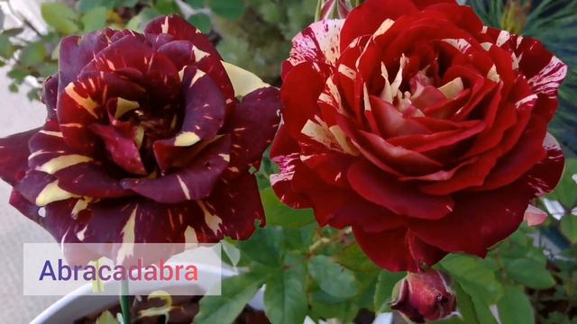 ABRACADABRA ROSE plant Floribunda Discovered by KORDES 2001 Thornless Variegated Yellow Red stripes