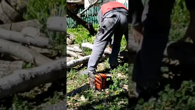 Бензопила работает на высоких оборотах