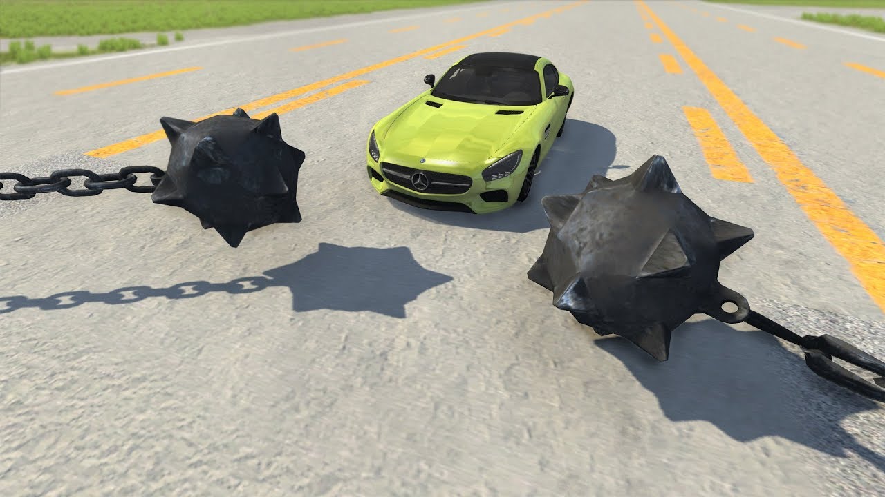 Автомобили против гигантского цепа – BeamNG.Drive.