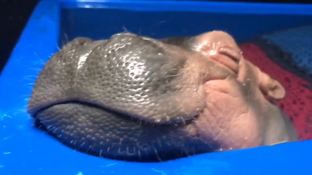 Бегемотик Фиона учится плавать