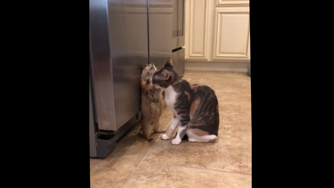 Кошка лижет луговую собачку