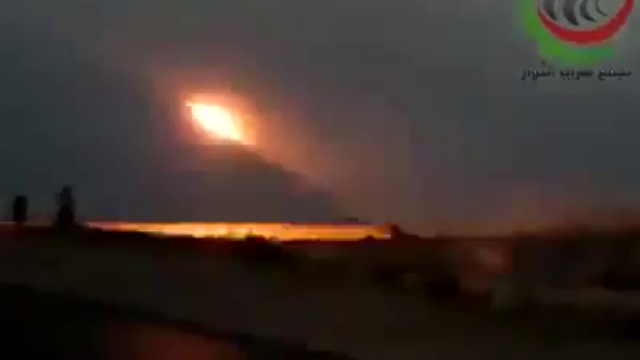 Залп РСЗО повстанцев по позициям войск Каддафи в Бреге