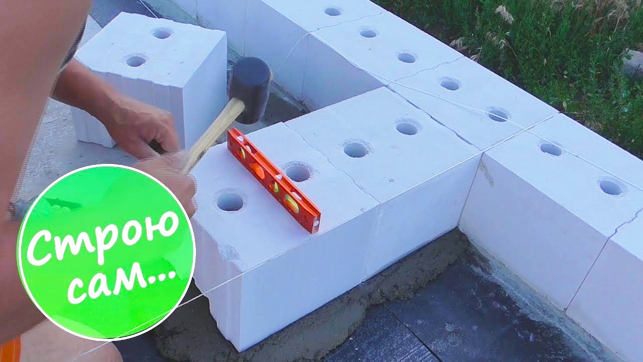 КЛАДКА ПЕРВОГО РЯДА СТЕНОВОГО БЛОКА
