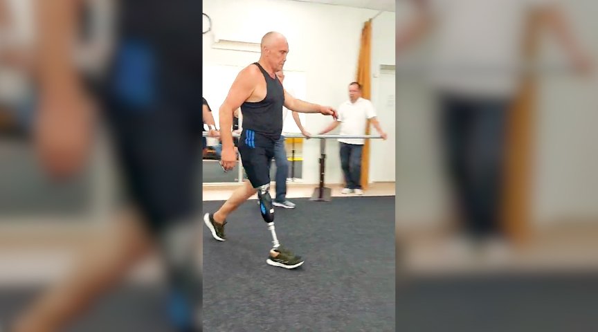 Учится ходить на протезе ноги с микропроцессором