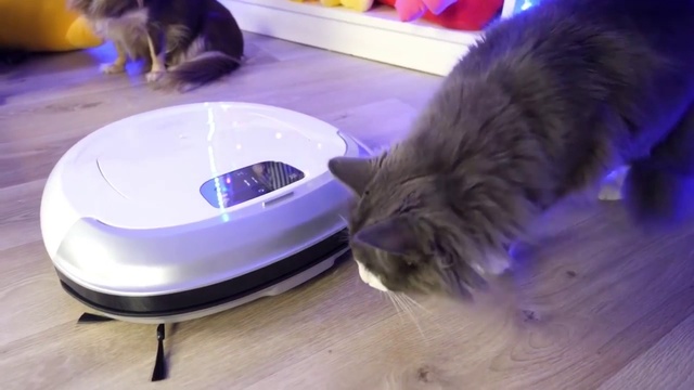 робот пылесос и кот