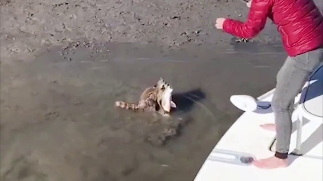 енот поймал рыбу