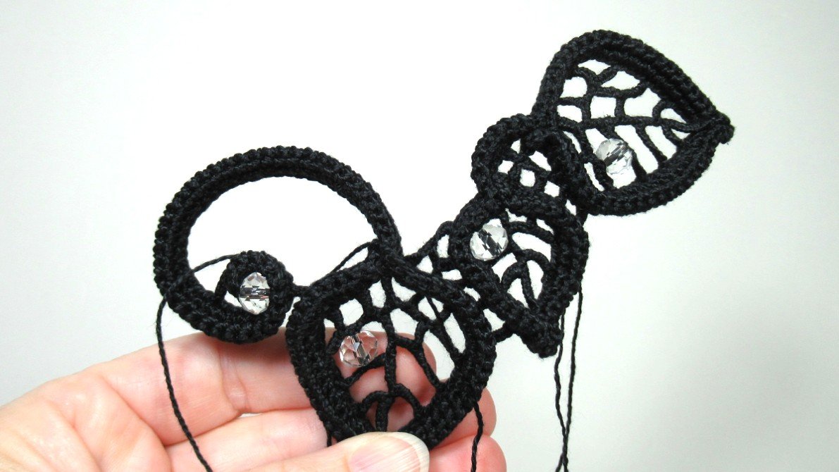Как добавить нить при сшивании листочка из вязаного крючком жгута