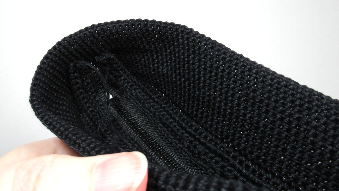Начинаю обшивать застежку "молния" вязаными крючком лентами для создания следующей сумки