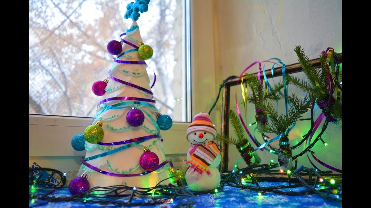 DIY. Новогодний декор. Ёлочка из ватных дисков. Снеговичок из носка (майки). Украшения для дома.