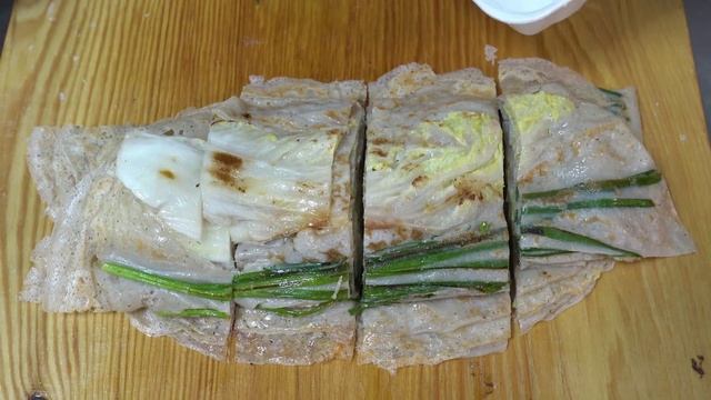 Блинчик с кимчи, капустный блин - корейская уличная еда
