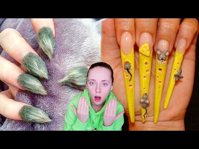 САМЫЙ БЕЗУМНЫЙ МАНИКЮР (дизайн ноготочки) В МИРЕ | реакция на топ самых странных маникюров