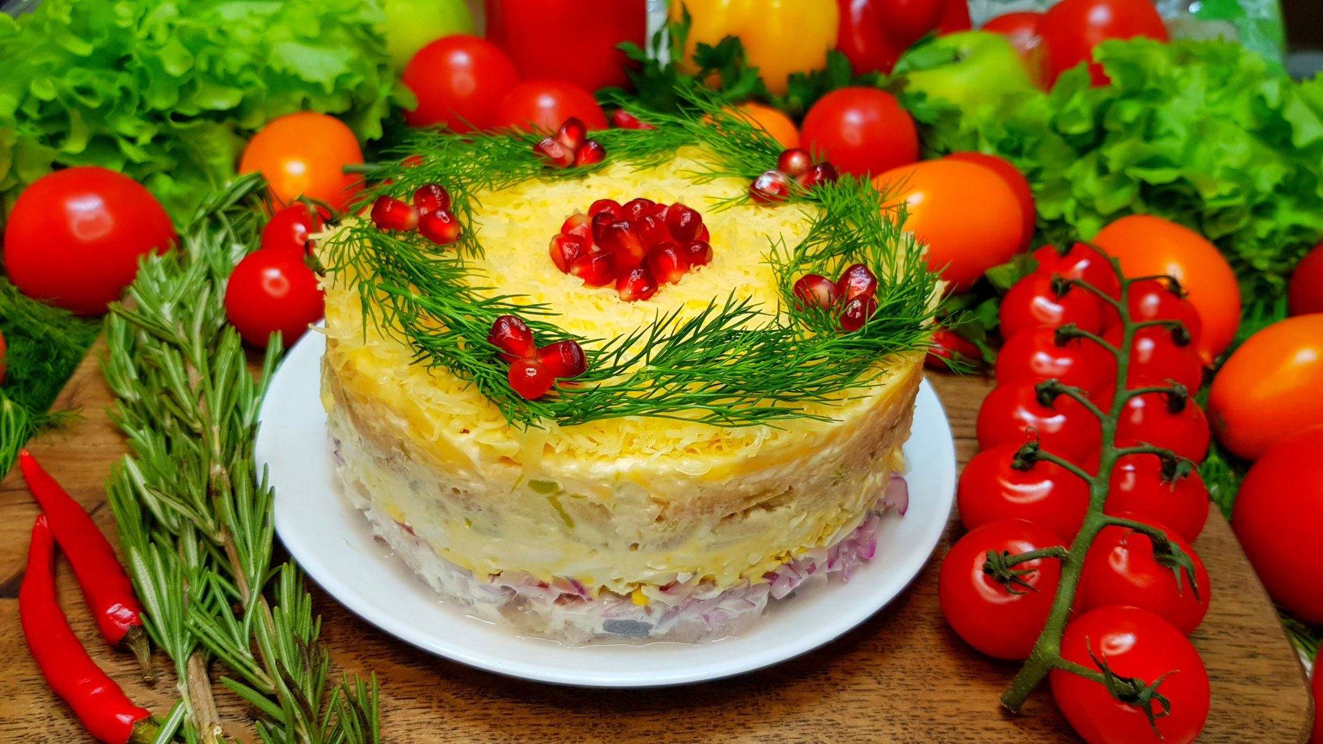 Вкусные салаты на праздничный стол Этот яркий новогодний салат легко заменит селедку под шубой