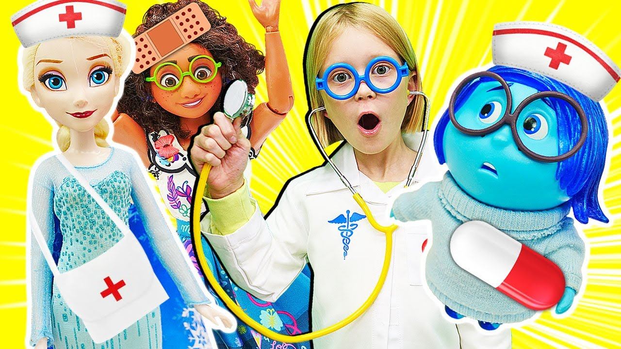 Играем в доктора с куклами из мультфильмов Холодное сердце, Головоломка и Энканто! Видео для девочек