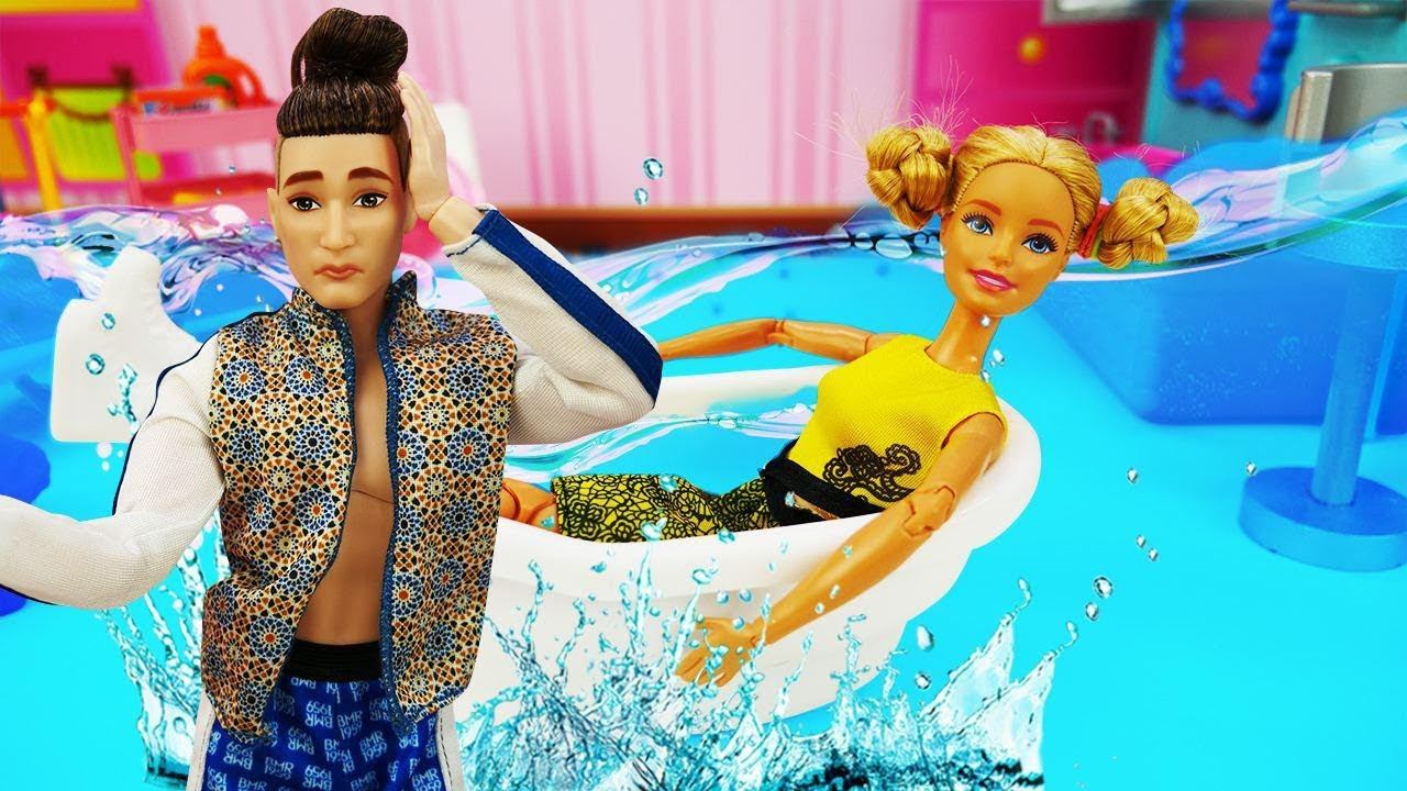 Барби не выключила воду - в ванной целое море! Видео для девочек про куклы