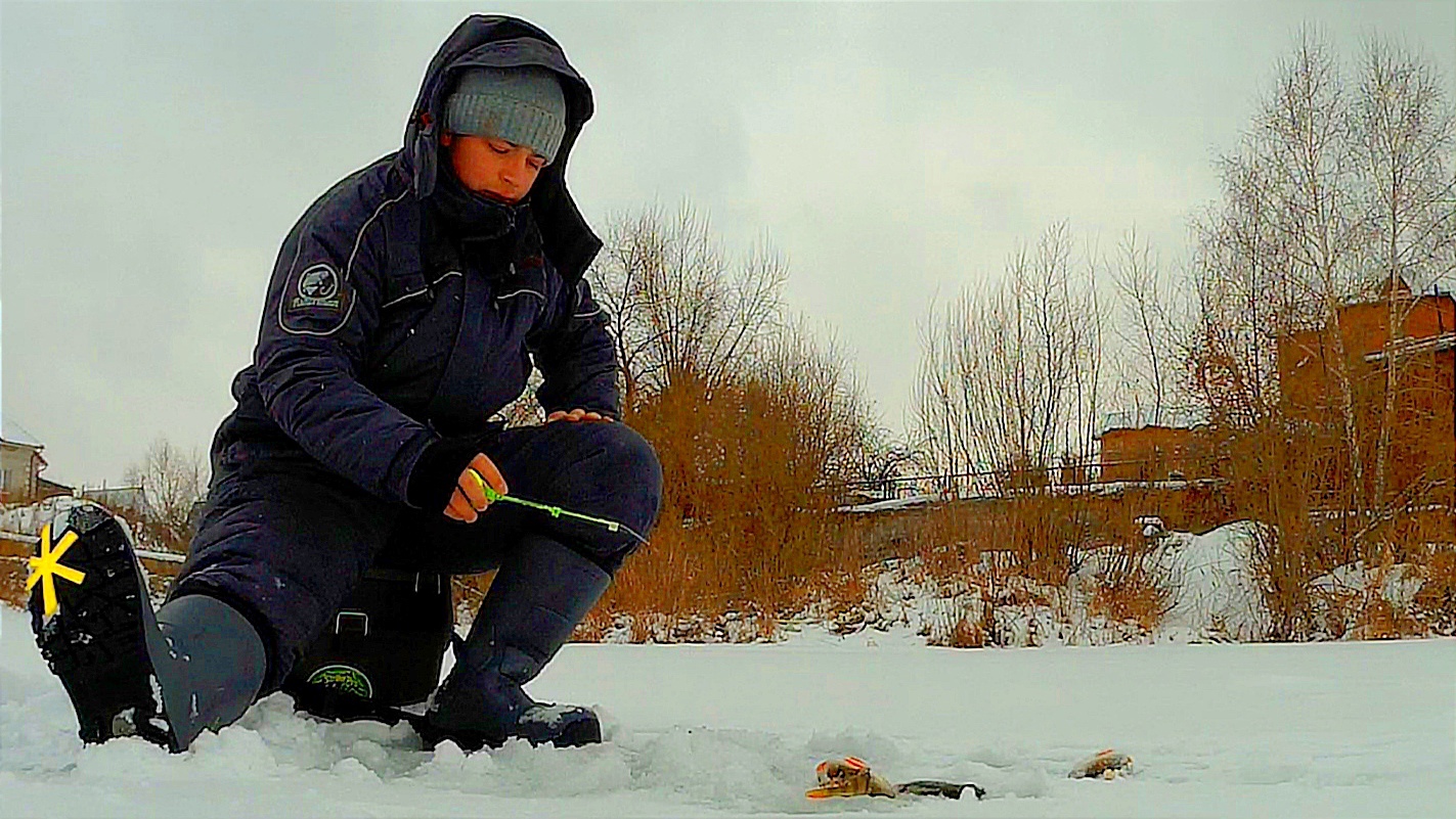Этот чертик ловит не опустившись до дна! Подобрал мормышку и начал ловить.