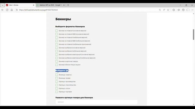 Бриф для рекламной активности