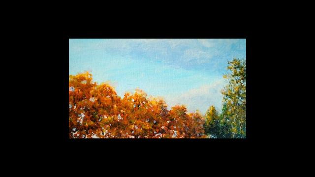 Обзор картины - Золотые клены. Набережная Волги. Кимры. 20х30см,холст акрил