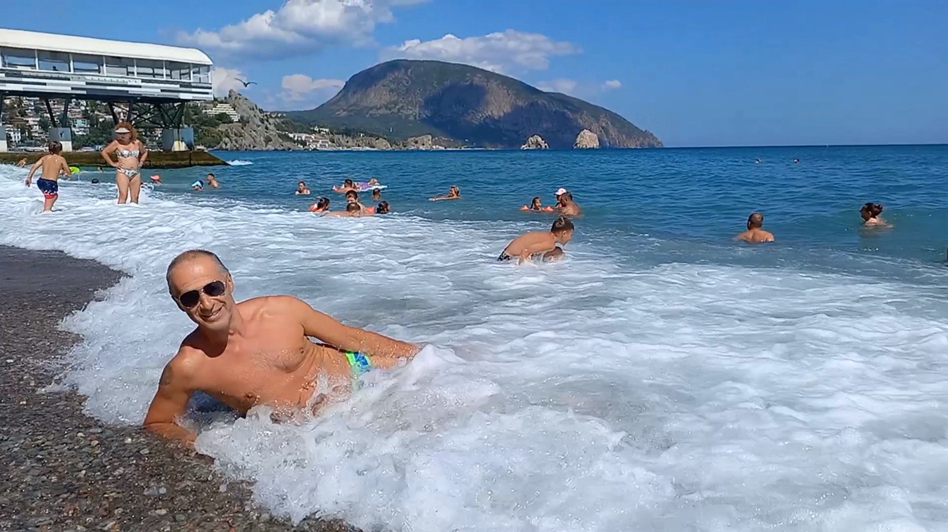 Обзор пляжа в Гурзуфе рядом с ДО "Мечта". Ныряем и купаемся в море. Крым.