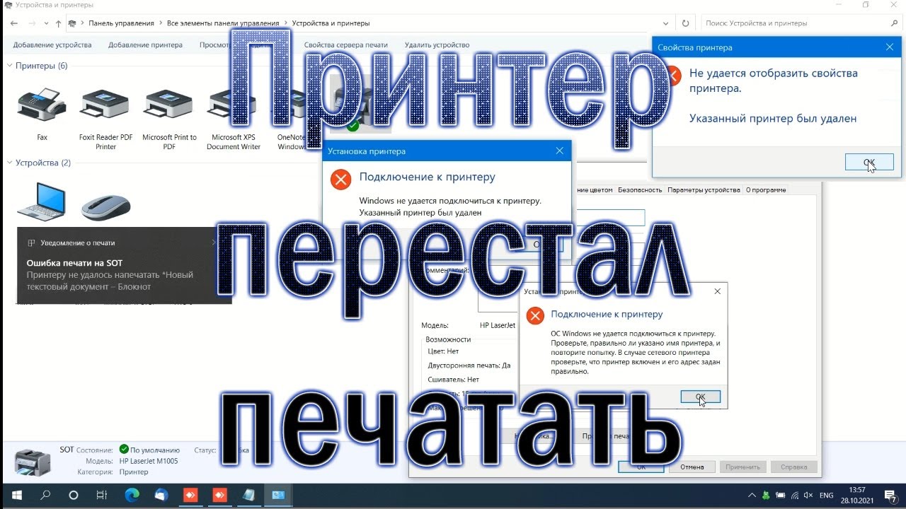 Сетевой принтер перестал печатать в Windows 10 после обновления. Ошибка печати. Принтер был удалён
