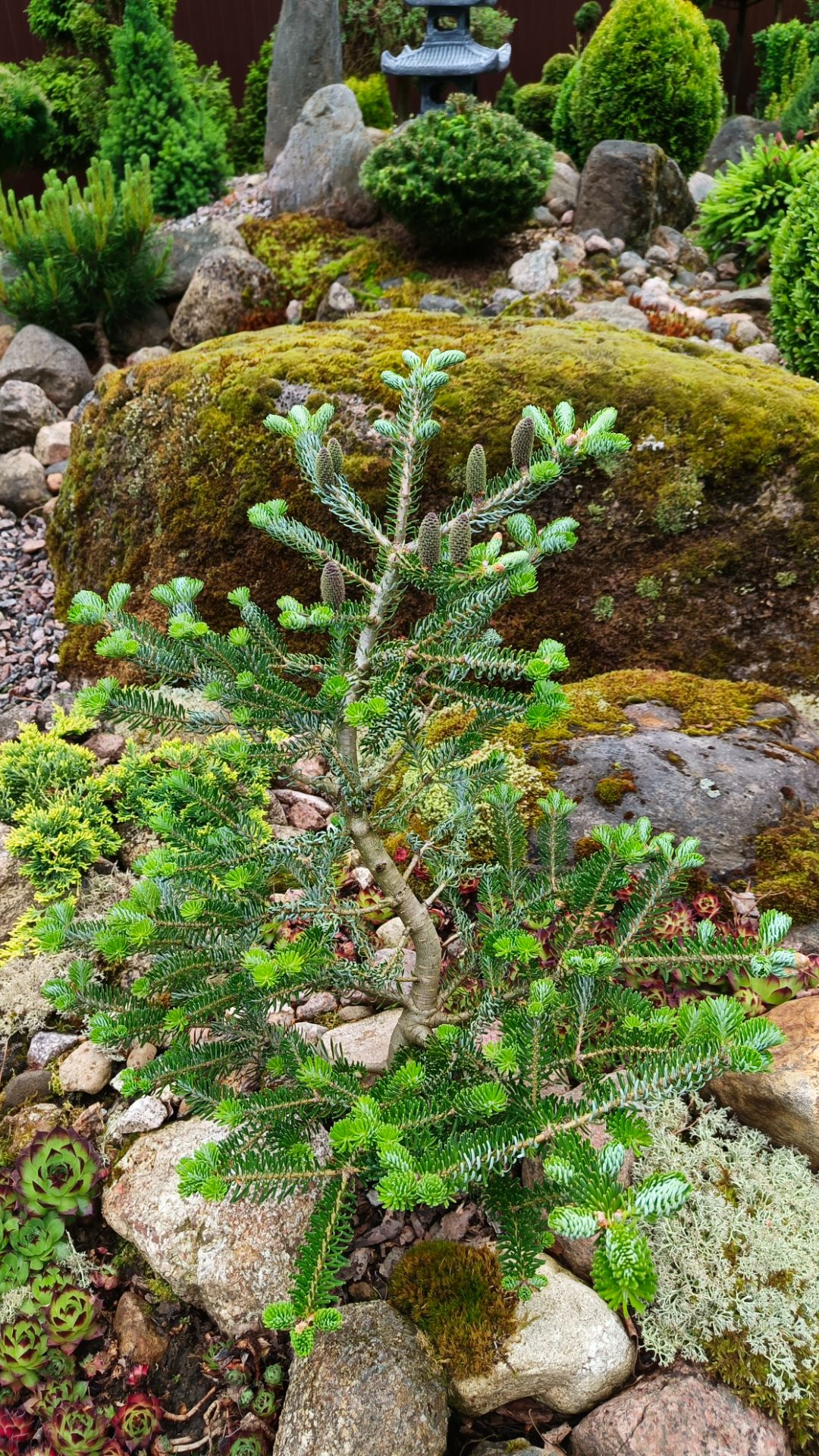 Семь сортов восточных елей в каменистом саду.
