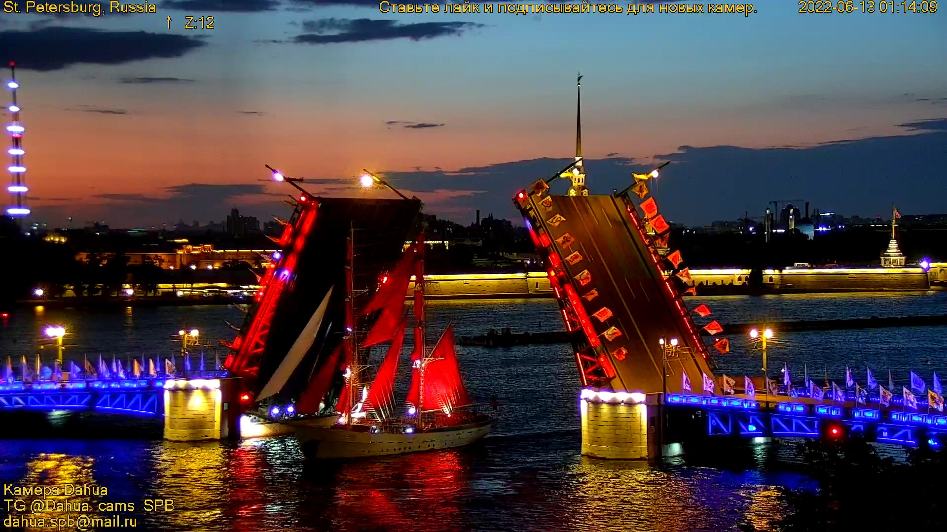 Алые паруса 2022 Волшебная феерия в Санкт-Петербурге генеральная репетиция с веб-камеры на Неве