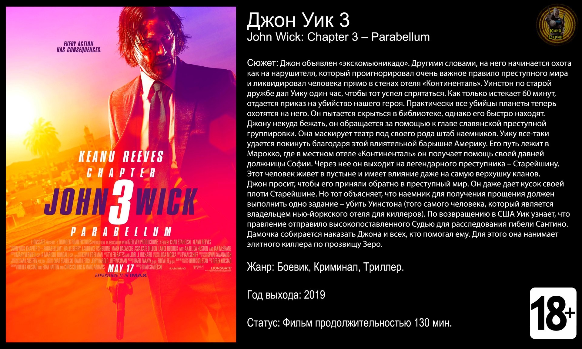Джон Уик 3 - трейлер 2019 4k