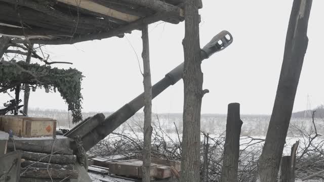 Боевая работа расчета гаубицы Д-30 на опорном пункте вблизи н.п. Работино