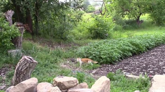 Молодой кот первый раз увидел жабу.mp4