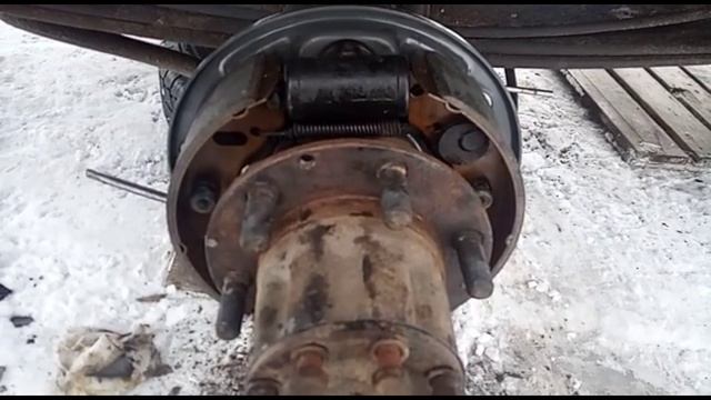 Замена опорных дисков колодок и барабанов на газеле.