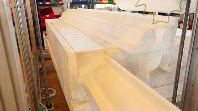 Термическая резка вспененных материалов на станке по резке пенопласта.