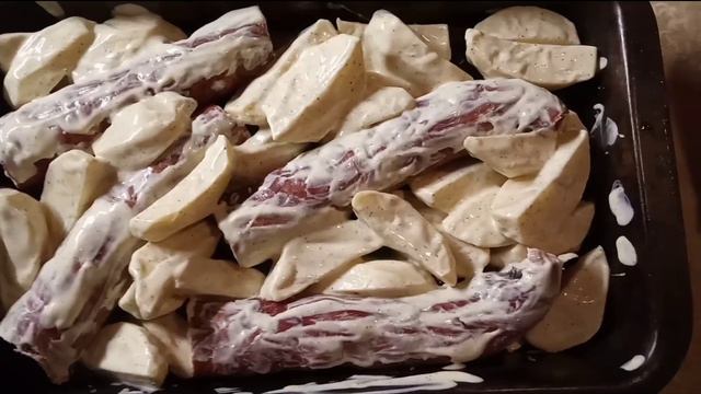 Свиные ребрышки запеченные в духовке_Рецепт сочных вкусных ребрышек с картофелем