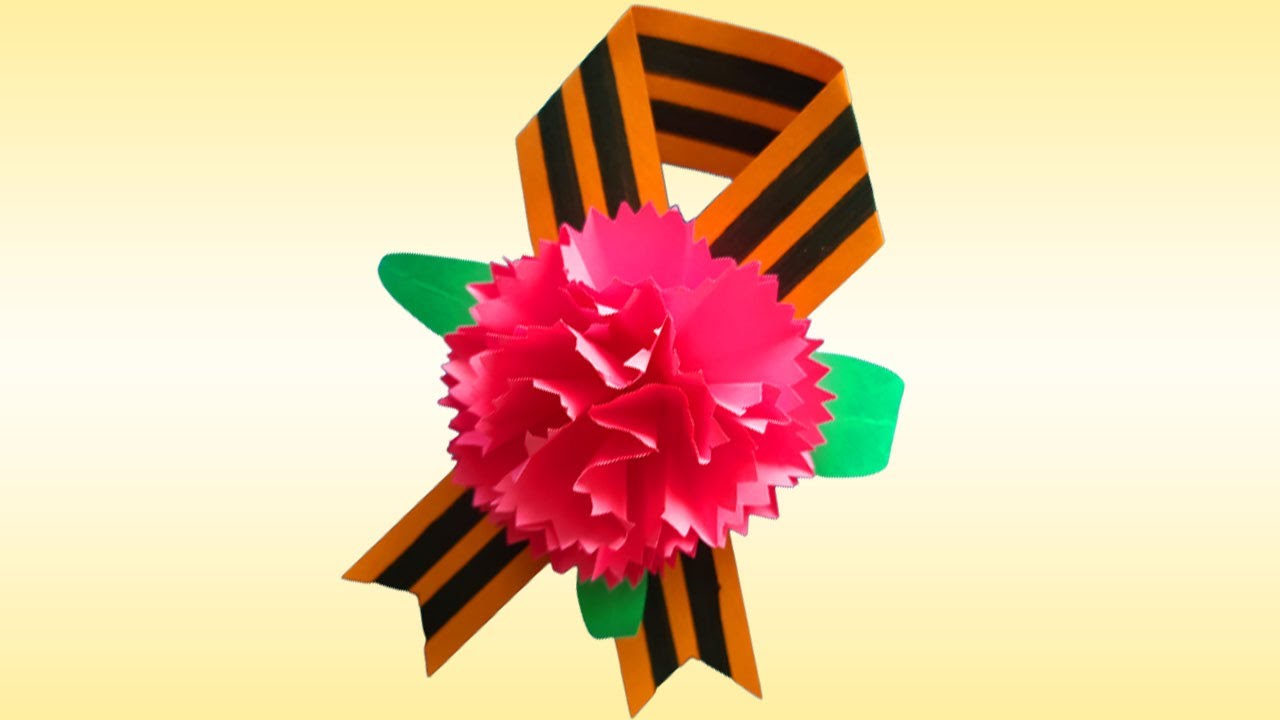 Открытка на 9 мая с гвоздиками из бумаги. Открытки своими руками с Днем Победы