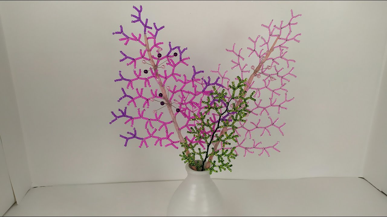 Работы из бисера. Декоративная веточка. Мастер класс. Пошаговый МК для начинающих.