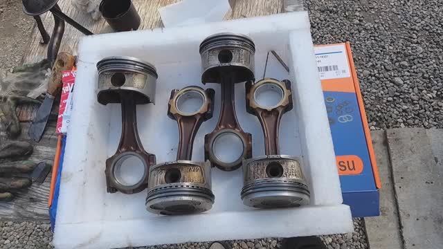 Установка поршней двигатель 5A-FE, второй средний ремнт