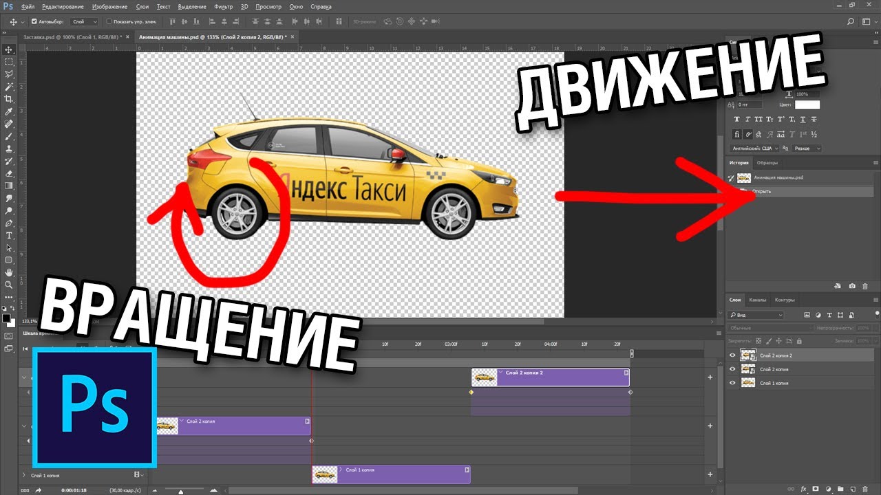 Анимация вращения и перемещения в фотошопе