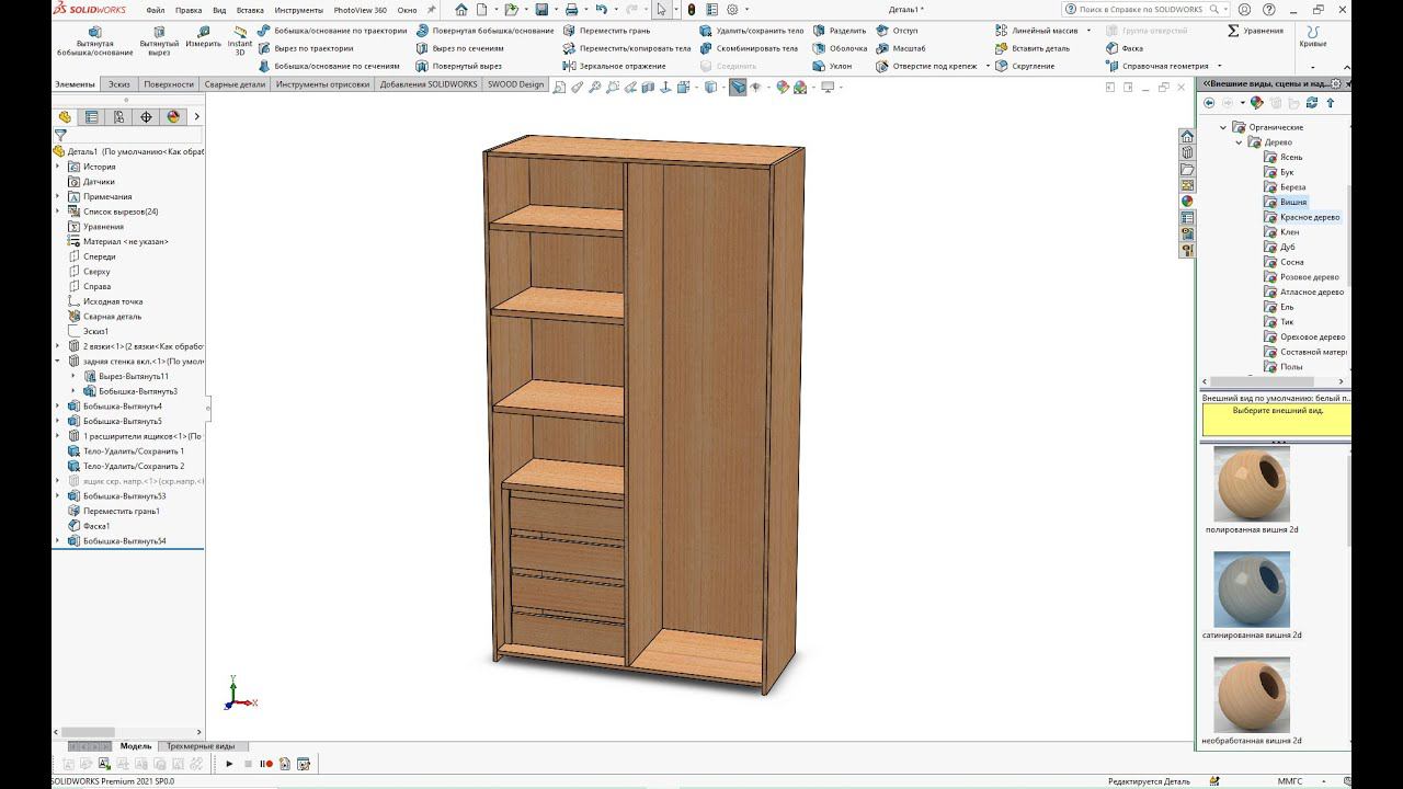 Корпусная мебель из массива в Solid Works