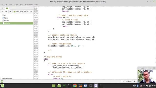 39-Bitboard CHESS ENGINE in C implementing MAKE MOVE function (updating occupancy bitboards)