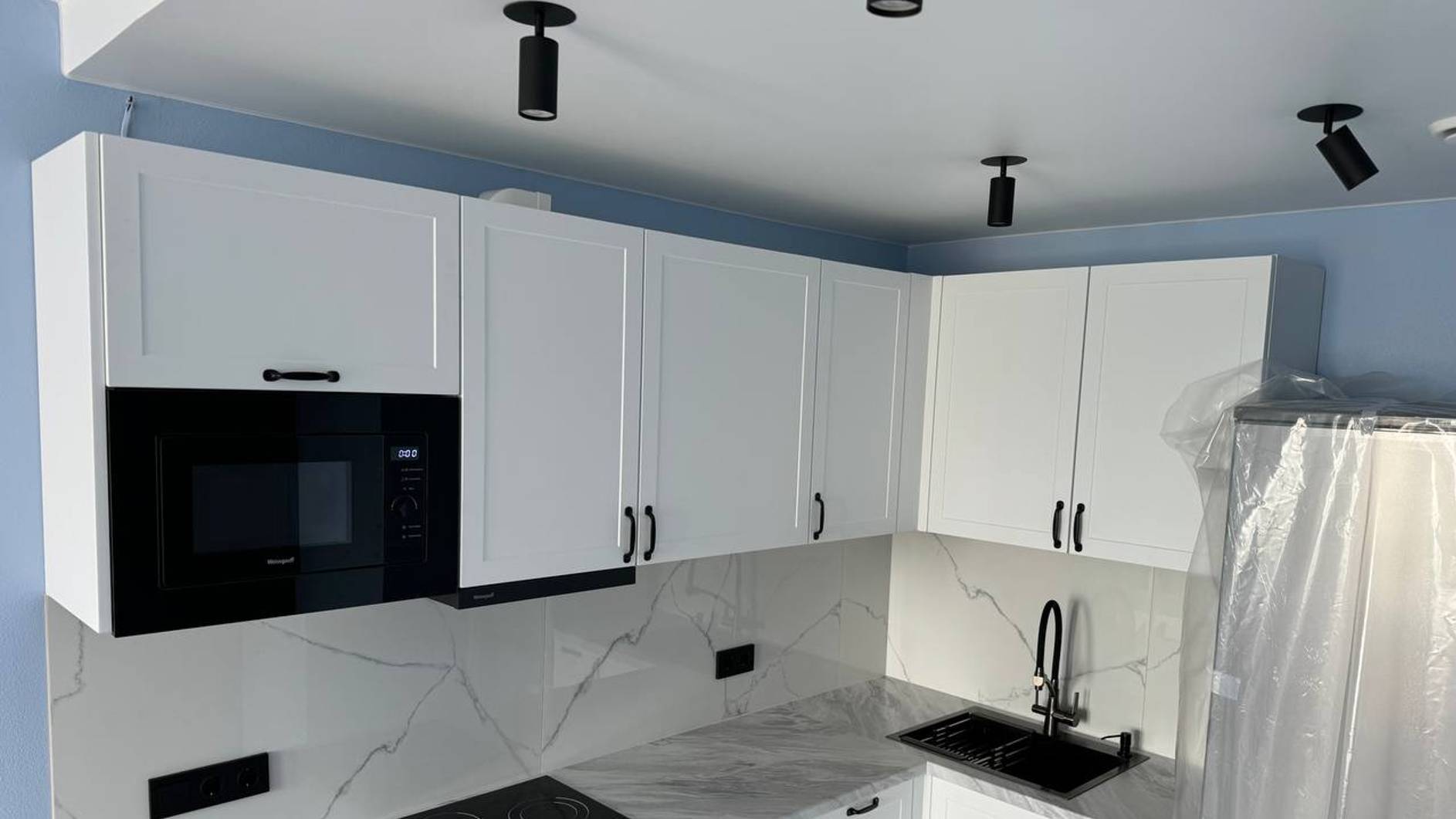 Кухня Леруа Мерлен. Фасады Аша Белый. Аша Грей. Столешница Мадуро