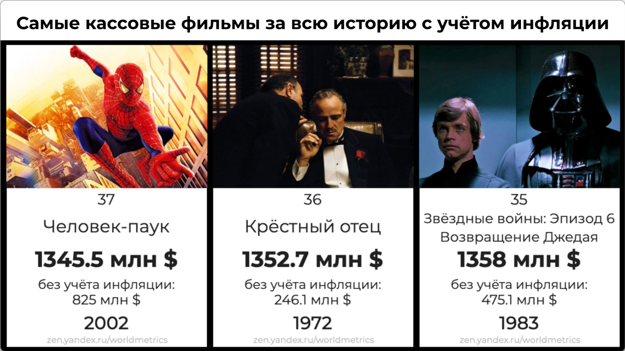ТОП-50 самых кассовых фильмов за всю историю кино (с учётом инфляции)