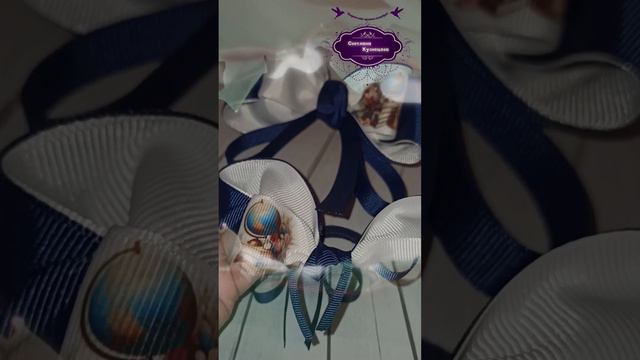 Новинка. Бантики школьные сине-белые с глобусом.