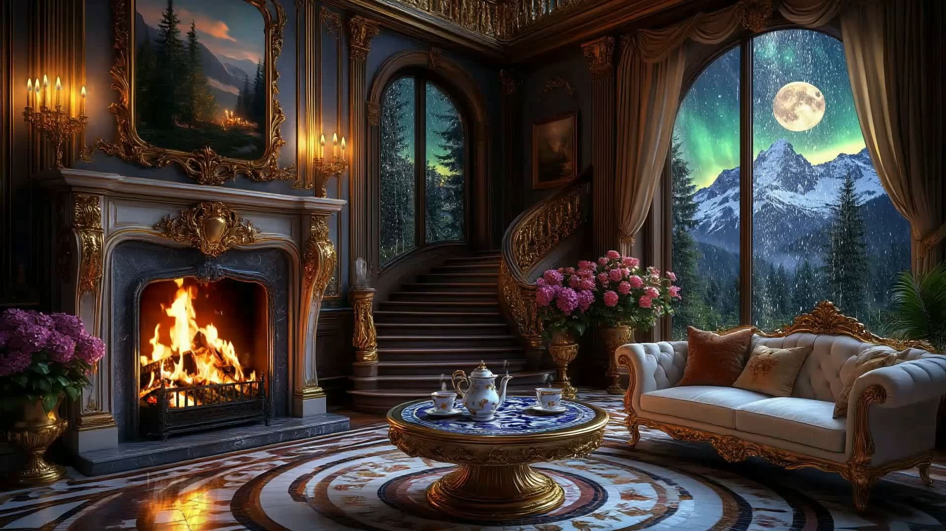 Звуки дождя и треск камина в уютной атмосфере слушать и засыпать
