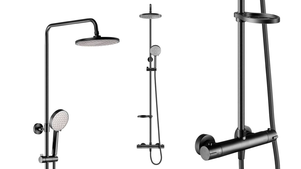 Распаковка семейного душа с верхним подключением и термостатом черного цвета Swedbe Hermes 5143B
