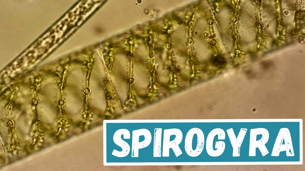 Spirogyra под микроскопом