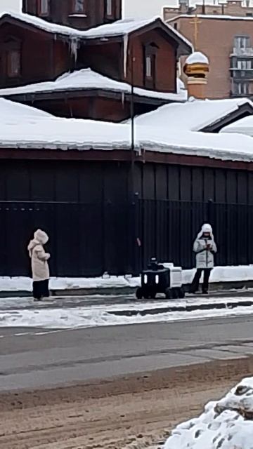 Дети гоняются за роботом