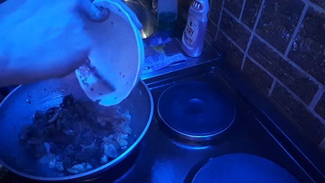 Приготовил курицу с грибами в сметанном соусе